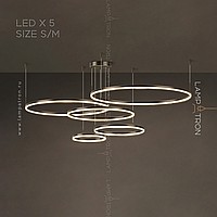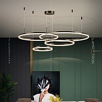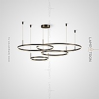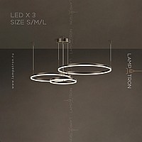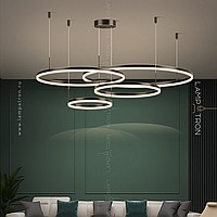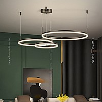 A series of LED chandeliers in the form of a combination of rings of different diameters with LED lighting along the contour of the case