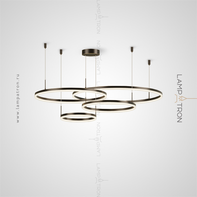 A series of LED chandeliers in the form of a combination of rings of different diameters with LED lighting along the contour of the case