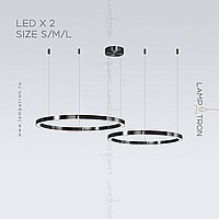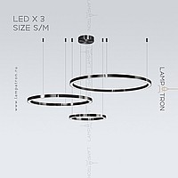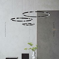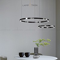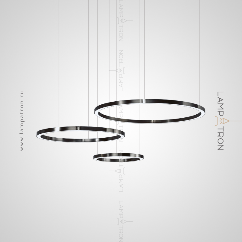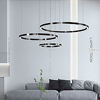 A series of LED chandeliers in the form of a combination of rings of different diameters with LED lighting along the contour of the case in black