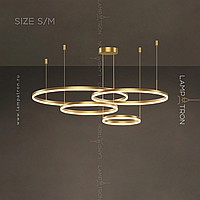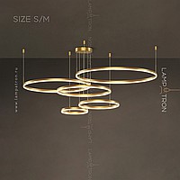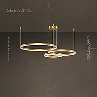 A series of LED chandeliers in the form of a combination of rings of different diameters with LED lighting along the contour of the case