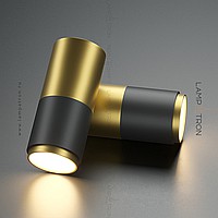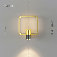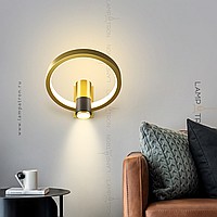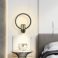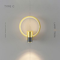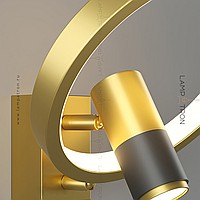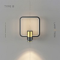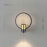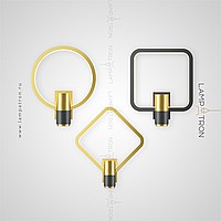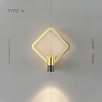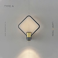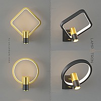 A series of wall lamps in the form of a combination of a cylindrical ceiling and a geometric frame with LED backlighting
