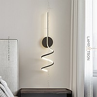 A series of wall -mounted LED lamps with an elongated tubular spiral -shaped ceiling