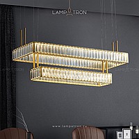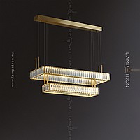 Double -tier LED chandelier with robbed dispersion in the form of crystal inserts on a rectangular case