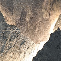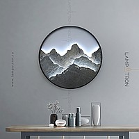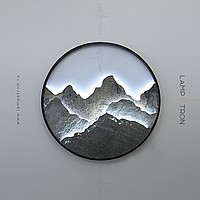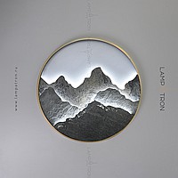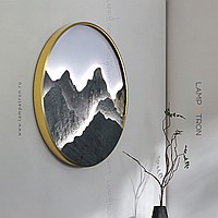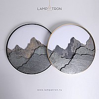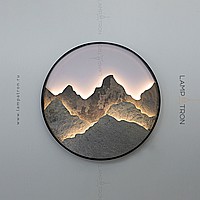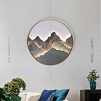 A series of LED wall lamps with a stone relief of mountains in a metal ring frame