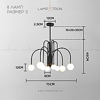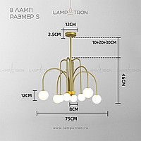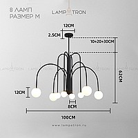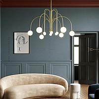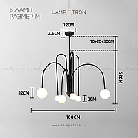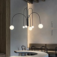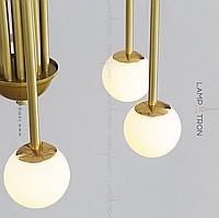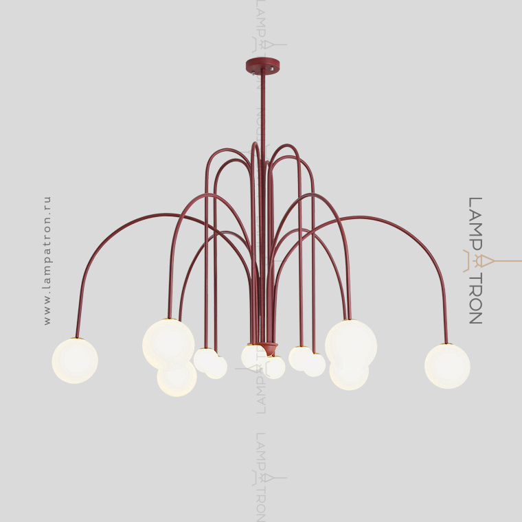 A series of designer chandeliers with spherical ceilings of different diameters on the arcs