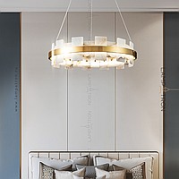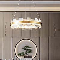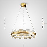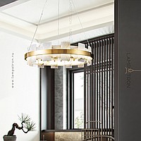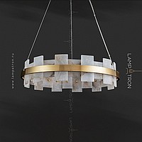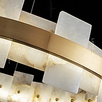 LED chandelier with a lampshade of rectangular marble plates on a ring frame