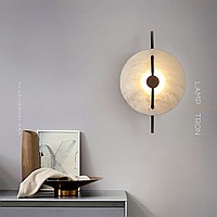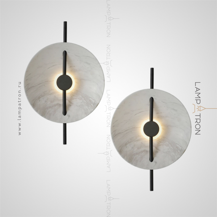 Wall lamp in the form of a concave disc made of marble with LED lighting