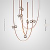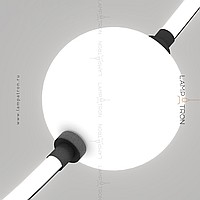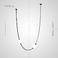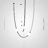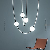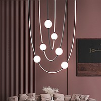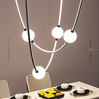 A series of suspended lamps with spherical ceiling on a tubular frame with an external and internal LED lighting