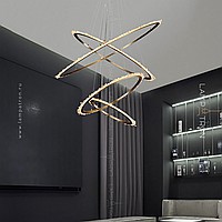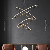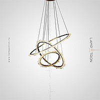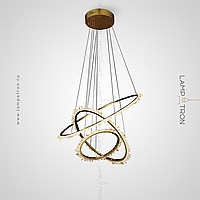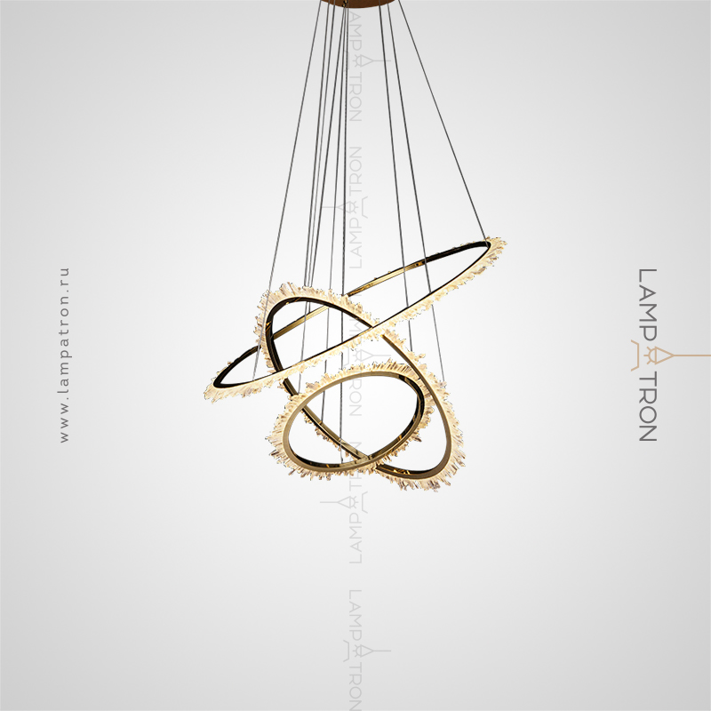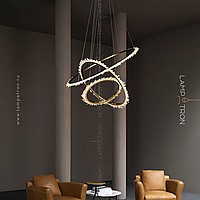 LED chandelier in the form of a composition of rings of different diameters with natural crystal stones on the external circuit circuit circuit