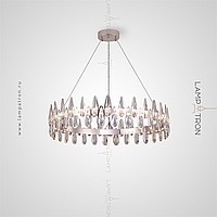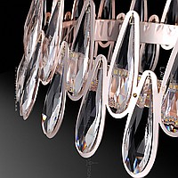 Ring LED chandelier with crystal drop -shaped disperfielders along the contour of the pink gold color body