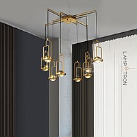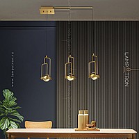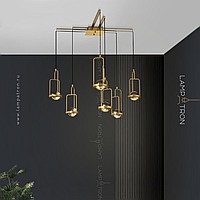 Series of chandeliers with spherical ceiling in a rectangular metal frame