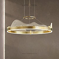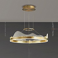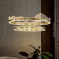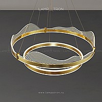 A series of LED chandeliers with wave-shaped transparent disperfielders with engraving on a ring cake with LED lighting
