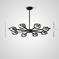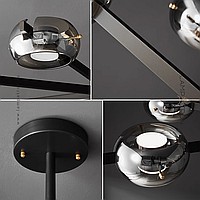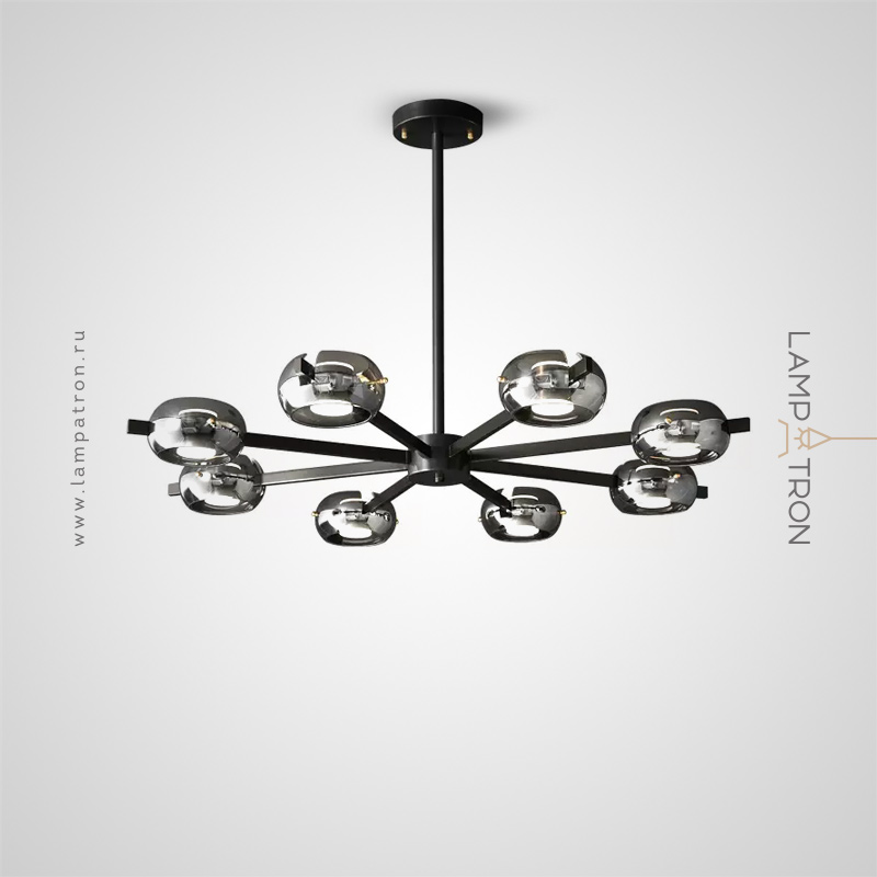 LED chandeliers series with handmade smoky glass shades on a beam frame and bi-directional light