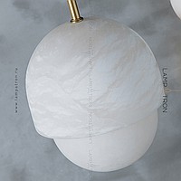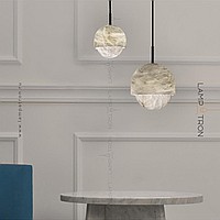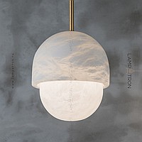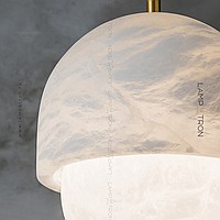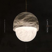 Designer suspended lamp with a mushroom -shaped ceiling made of natural white marble