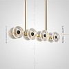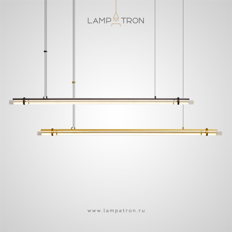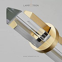 A series of slatted LED luminaires with a glass triangular prism diffuser on a brass body