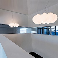 Skandinavian lamp with a matte minimalist lampshade in the shape of a ring.