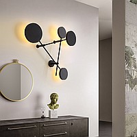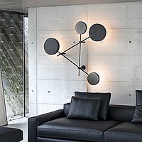 Wall designer lamp from combinations of round LED matrices, connected by the re -frame. Together, it is a fashionable installation. Presented in 2 sizes.