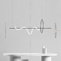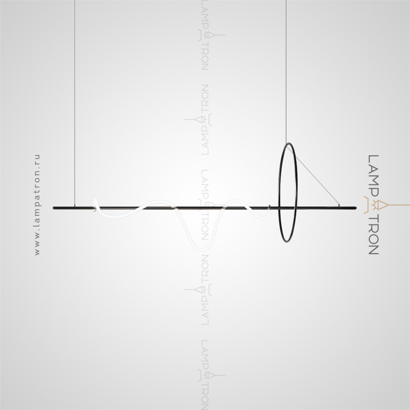 A series of rack lamps in the form of a combination of a ring and a horizontal rail, freely entwined with LED cord