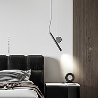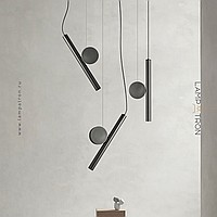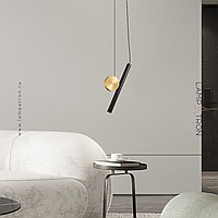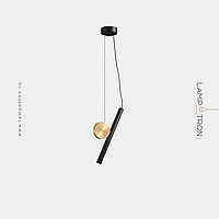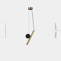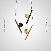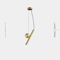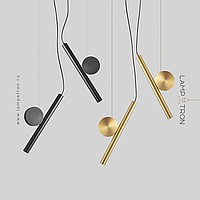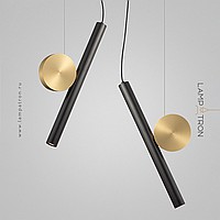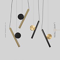 A series of LED pendant lights in the form of a combination of an elongated spot and a decorative disc made of real brass