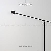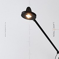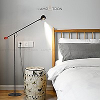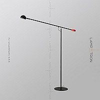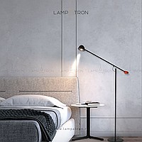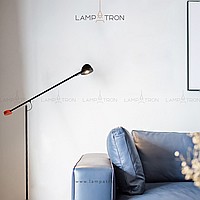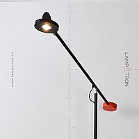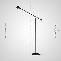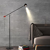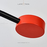 A floor lamp with a disc -shaped ceiling on a movable rod with a red tip