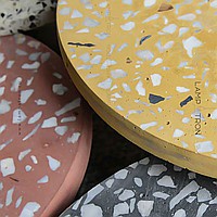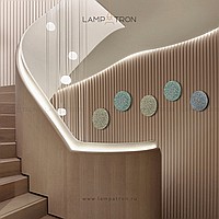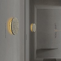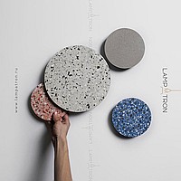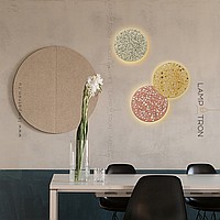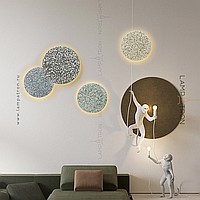 A series of wall -mounted LED lamps with discs from multi -colored marble terrazzo