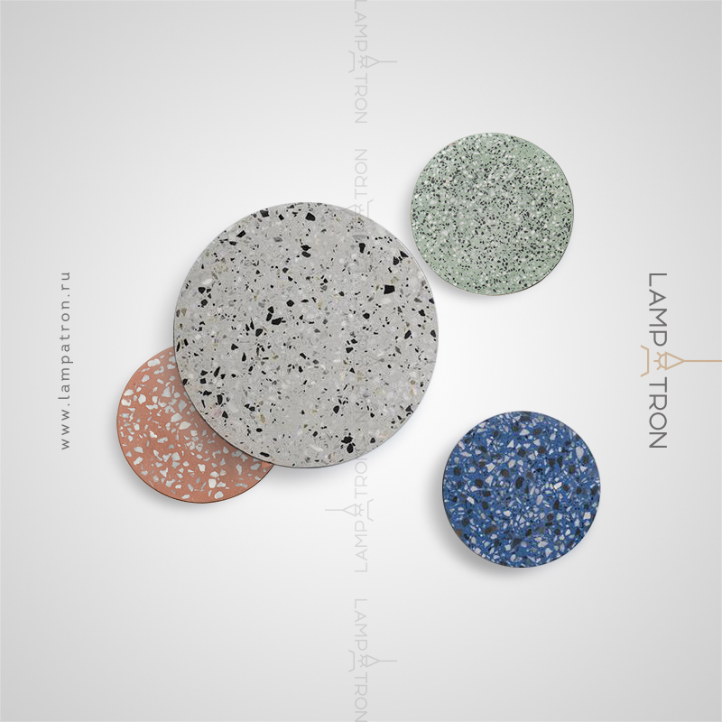 A series of wall -mounted LED lamps with discs from multi -colored marble terrazzo