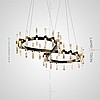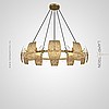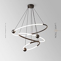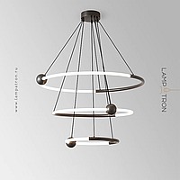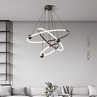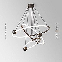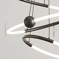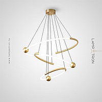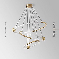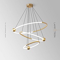 Ring hanging chandeliers made of brass with semicircular light segments and spherical décor