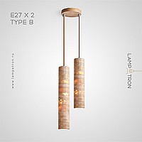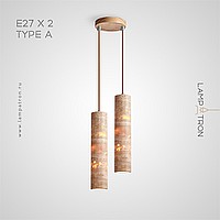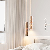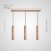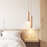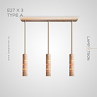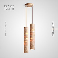 Ready-made combination of pendant lamps with a cylindrical body made of yellow travertine stone