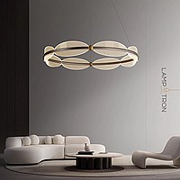 Ring chandelier with curved shades on string suspension