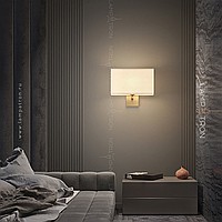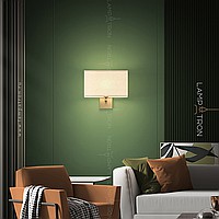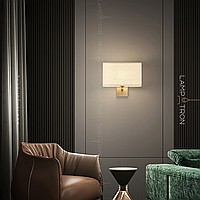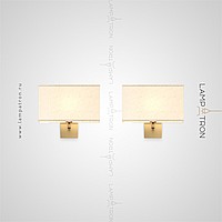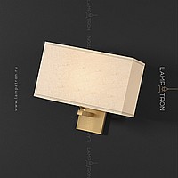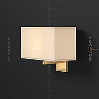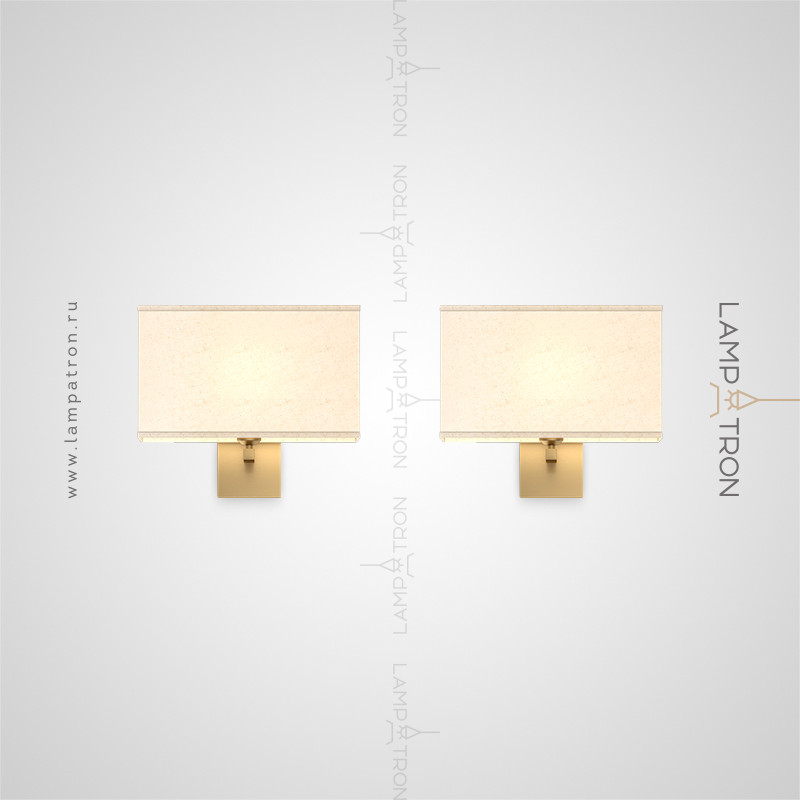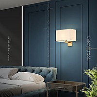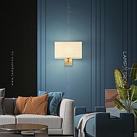 Wall lamp with white textile lampshade of a rectangular shape on a brass mount