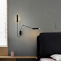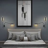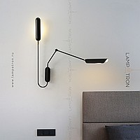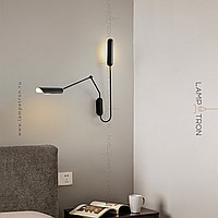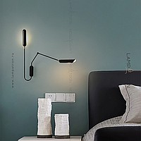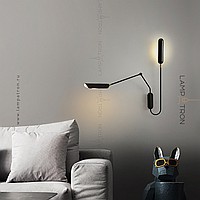 Wall lamp with two elongated rounded plafones on an arcuate mug and telescopic rack
