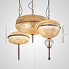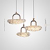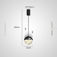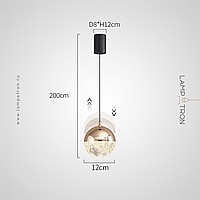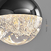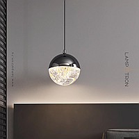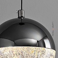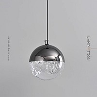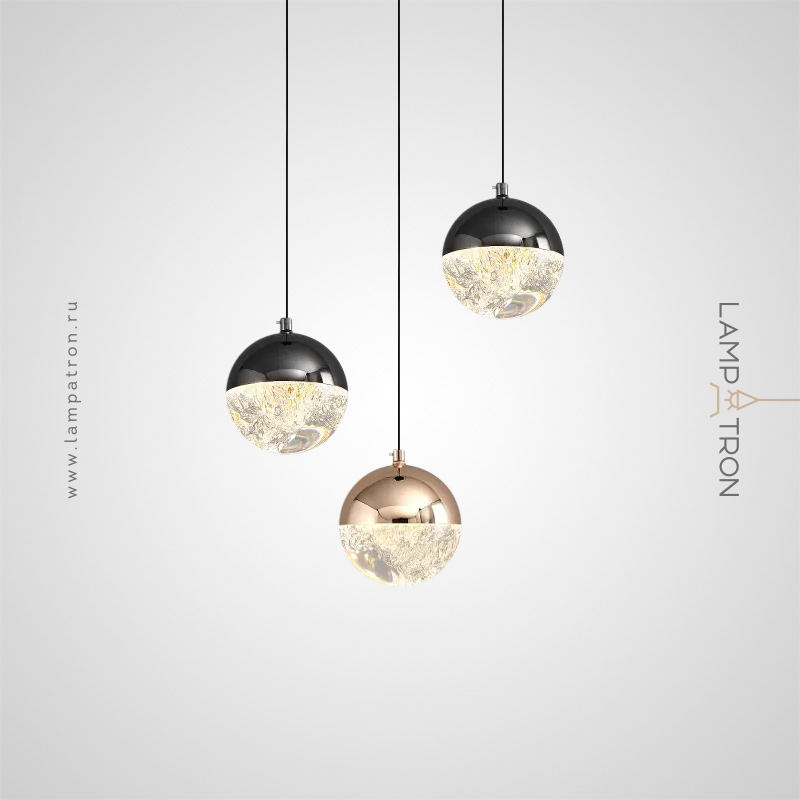 A series of pendant luminaires with LED light sources in hemispherical diffusers with an ice effect inside spherical shades