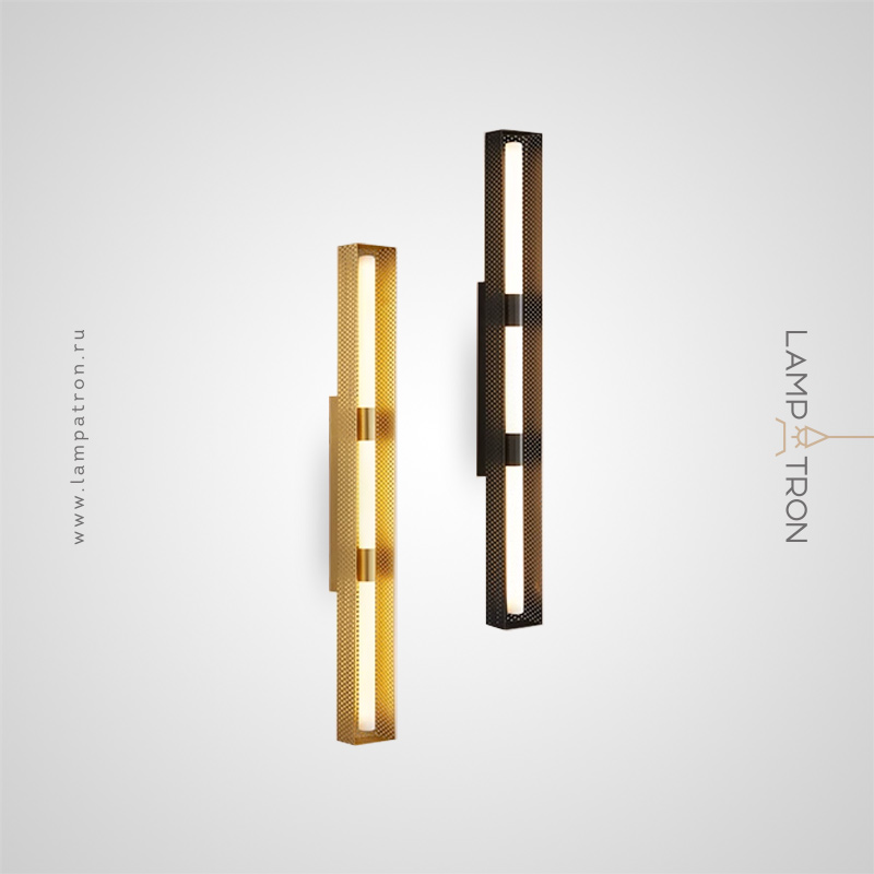 A series of LED wall lamps with an elongated cylindrical shade and an anti-reflective grille on the sides