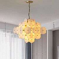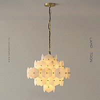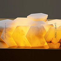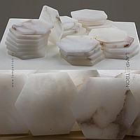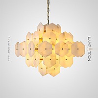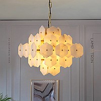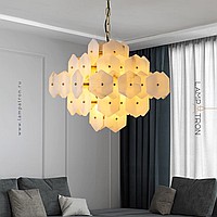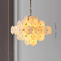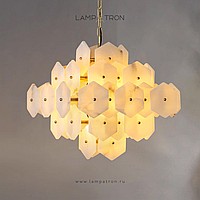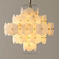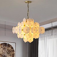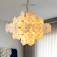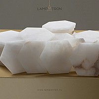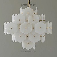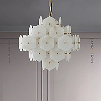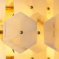 Pendant lamp of marble hexagons arranged in tiers on a brass frame