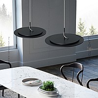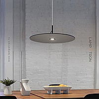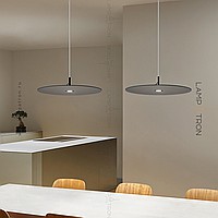 Suspended LED lamp with a round ceiling on a disc -shaped matte case