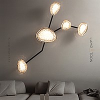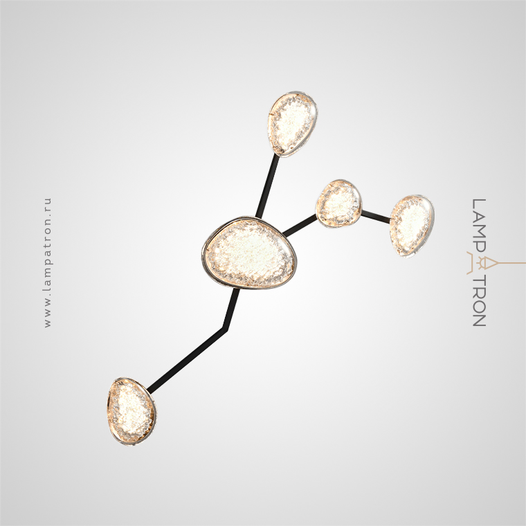 A series of LED wall installations of teardrop-shaped luminaires with an ice effect connected in the form of constellations