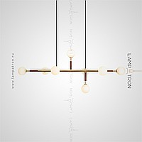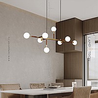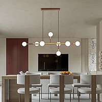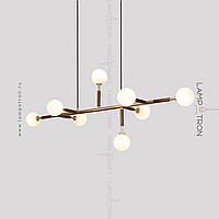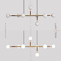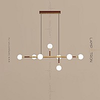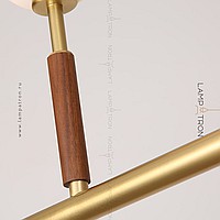 Rack lamp with spherical glass shades on multidirectional wooden horns