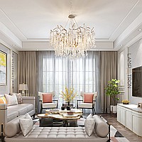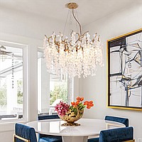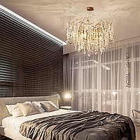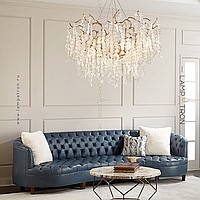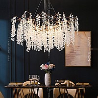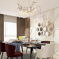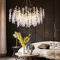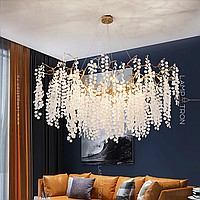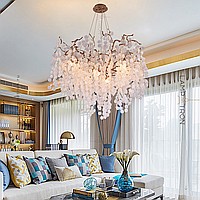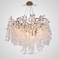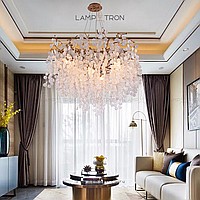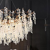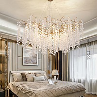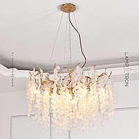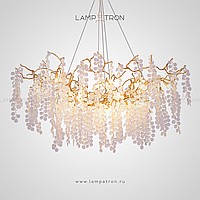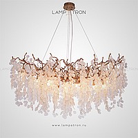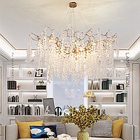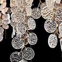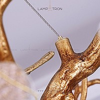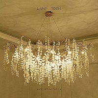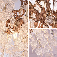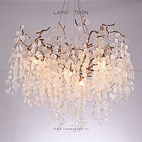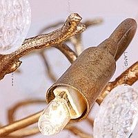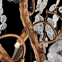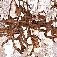 A chandelier with natural motifs on a branchy frame and type pendants made of round glass elements