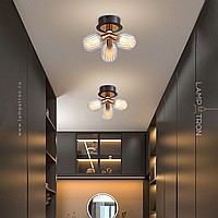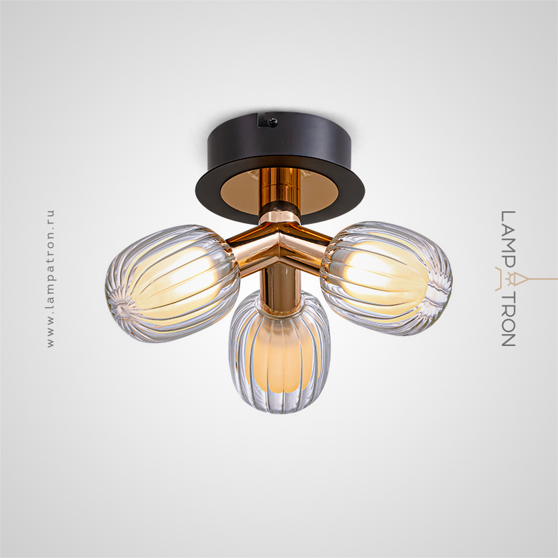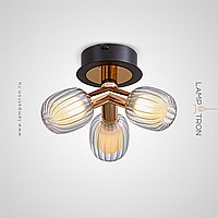 Ceiling LED chandelier with spherical shades made of embossed glass
