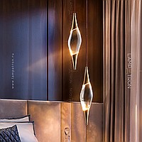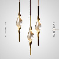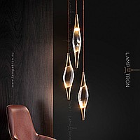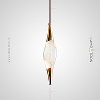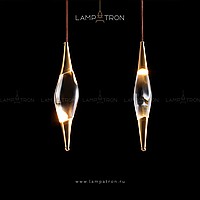 Suspended lamp in the form of a drop with metal tips