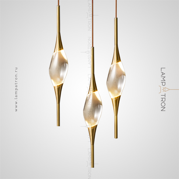 Suspended lamp in the form of a drop with metal tips