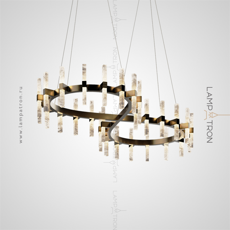 Ring LED chandelier with rectangular ceiling from natural white marble on two black rings