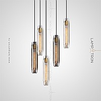 A series of suspended lamps with a cylindrical robbed plafon made of transparent and smoky crystal