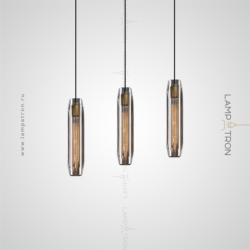 Ready -made combination of suspended lamps with robbed cylindrical ceiling from transparent and smoky crystal