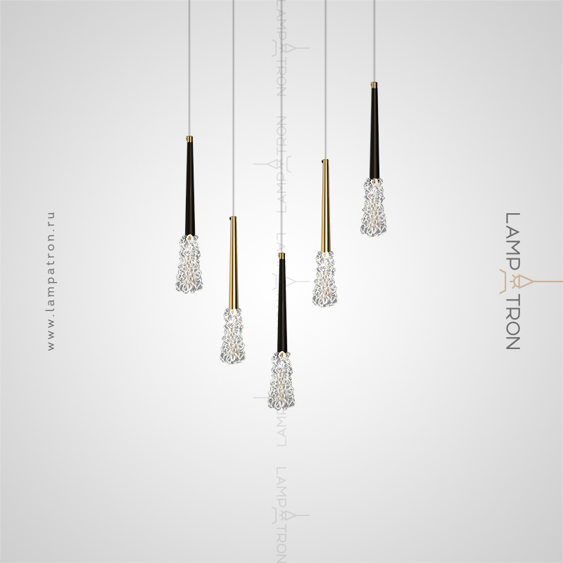 A series of suspended lamps with the effect of ice in elongated conical holders