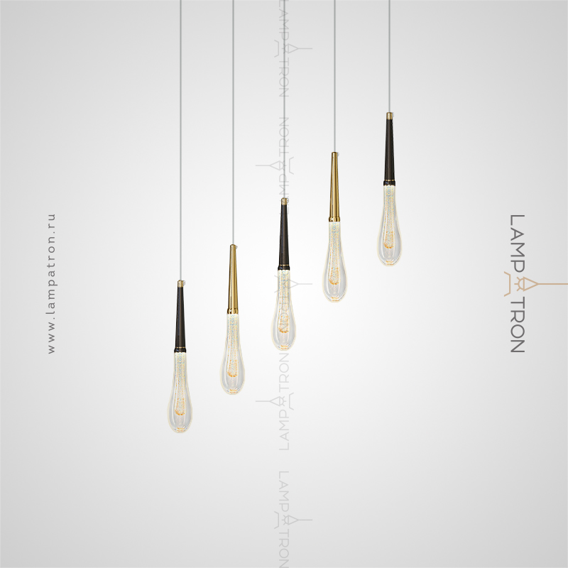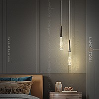 Suspended LED lamp with a crystal -shaped ceiling with the effect of air bubbles in an elongated conical holder