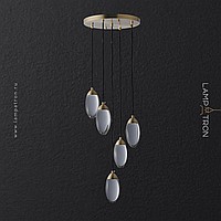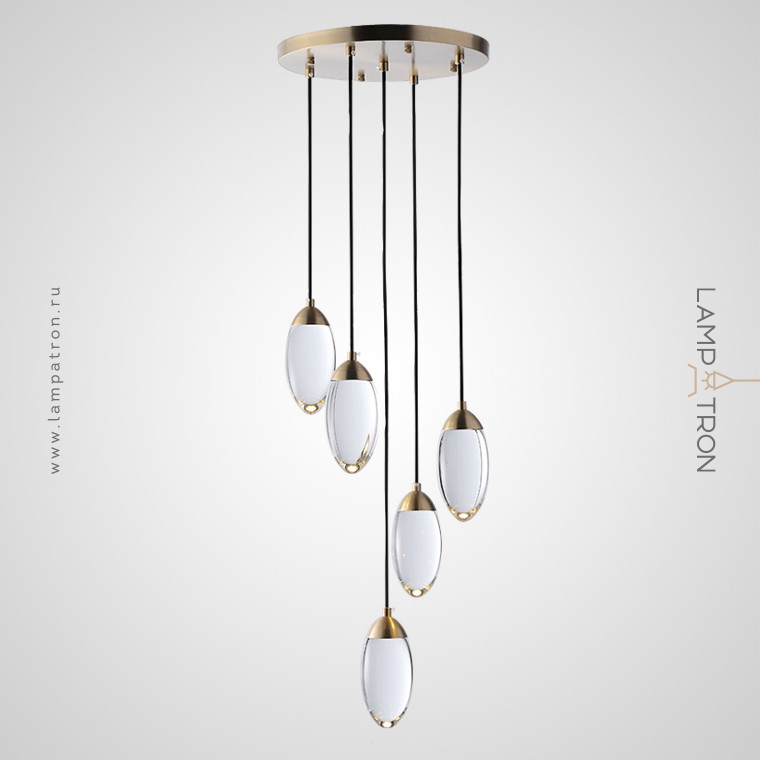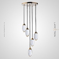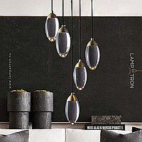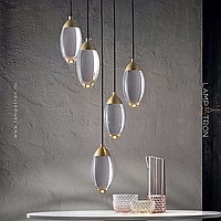 A beautiful combination from the FIIERA series with 5 lamps located at different levels at a common ceiling disk — when glass and light cannot without each other!