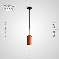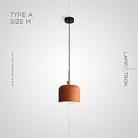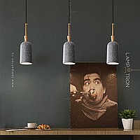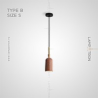 A series of suspended lamps with rounded cylindrical ceiling in a conical wooden holder