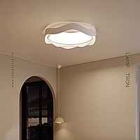A series of ceiling luminaires with a body of two rings in a wave-shaped shape with LED lighting