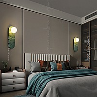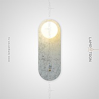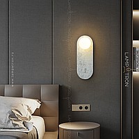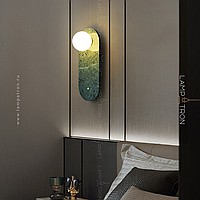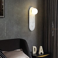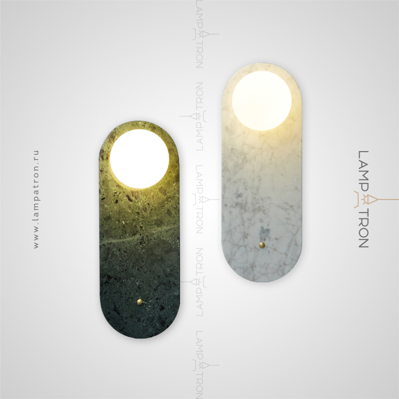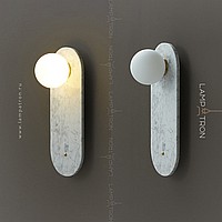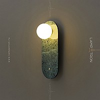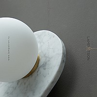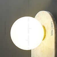 A series of wall lamps with a white spherical glass of glass on a marble base with rounded edges